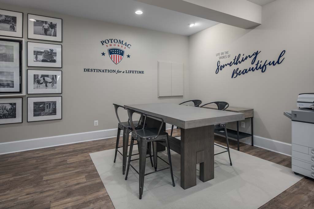 Potomac Shores is a lifestyle and the siteplan alone tells a BIG story. And when one image has so much to say, you give it the best placement to do its job. As a wallpaper, you can’t miss all there is to this award-winning community. With a Jack Nicklaus Signature Design golf course dotting the landscape. Trails winding through. Schools, The Shores Club and neighborhood districts with homes built by the nation’s top builders, Ryan Homes, NVHomes, Brookfield Residential and Pulte Homes. And, just like its namesake, it’s on the shores of something beautiful along the mighty Potomac. An interactive photo display comes to life with a video at the center of it all. A design so unique, we were asked to repurpose it for a smaller townhome sales space, too. An award-winning sales center for an award-winning community.