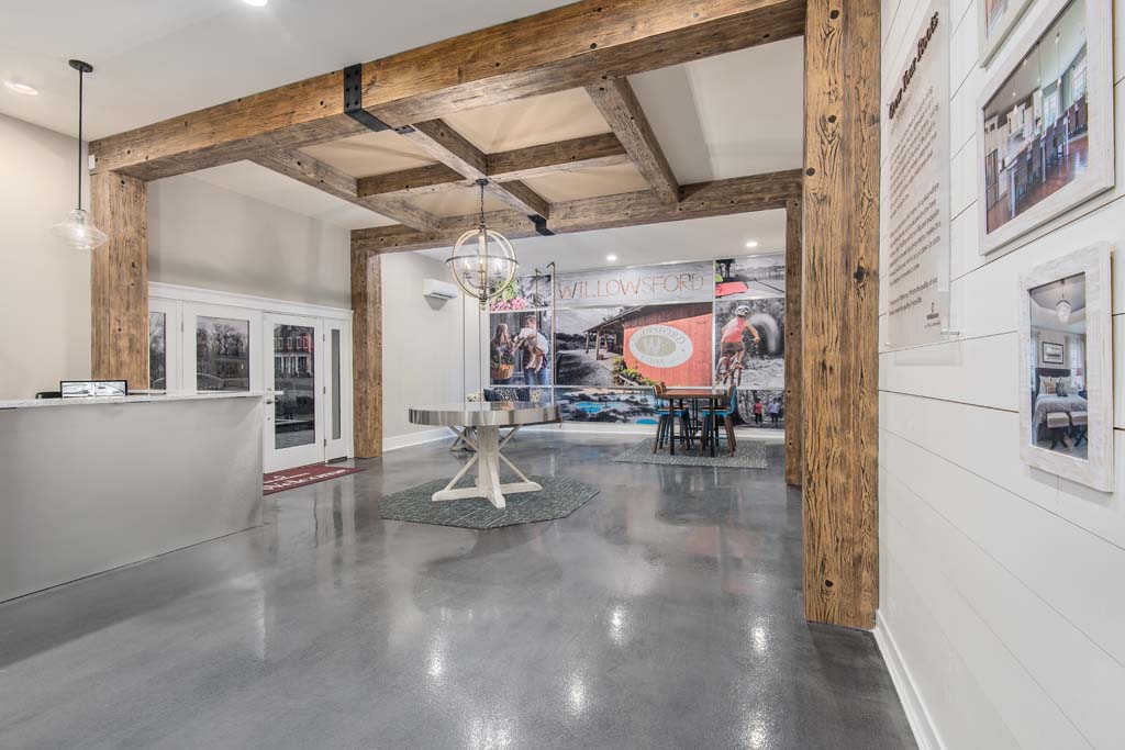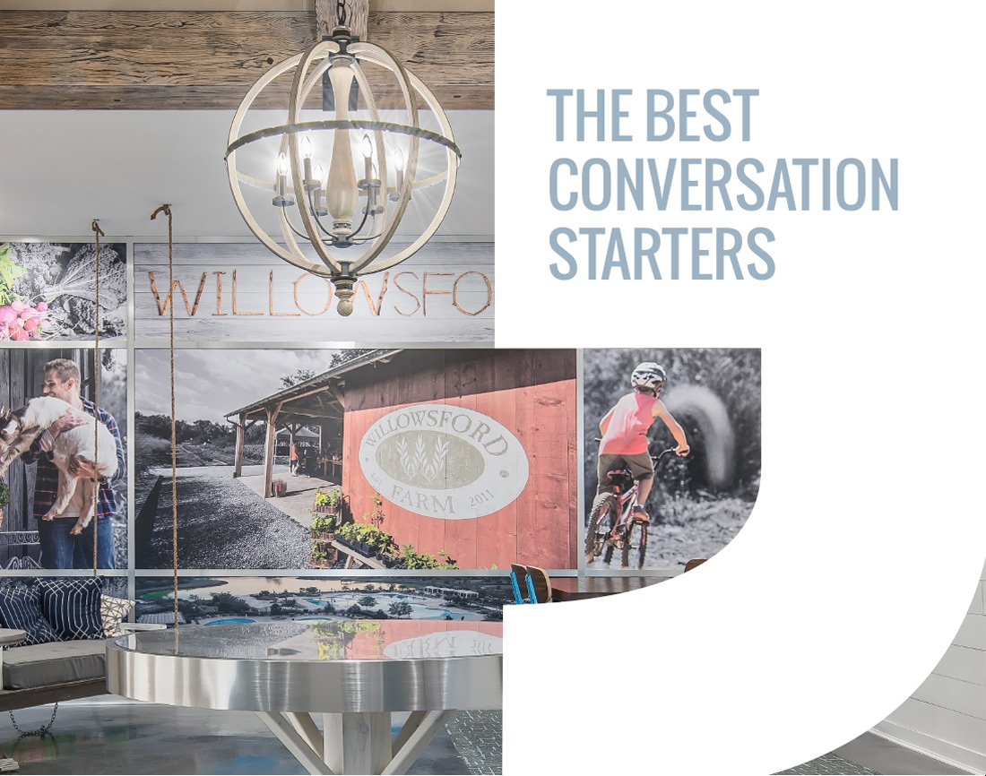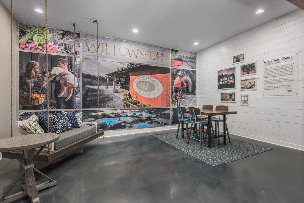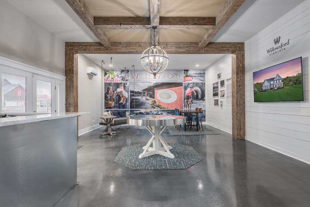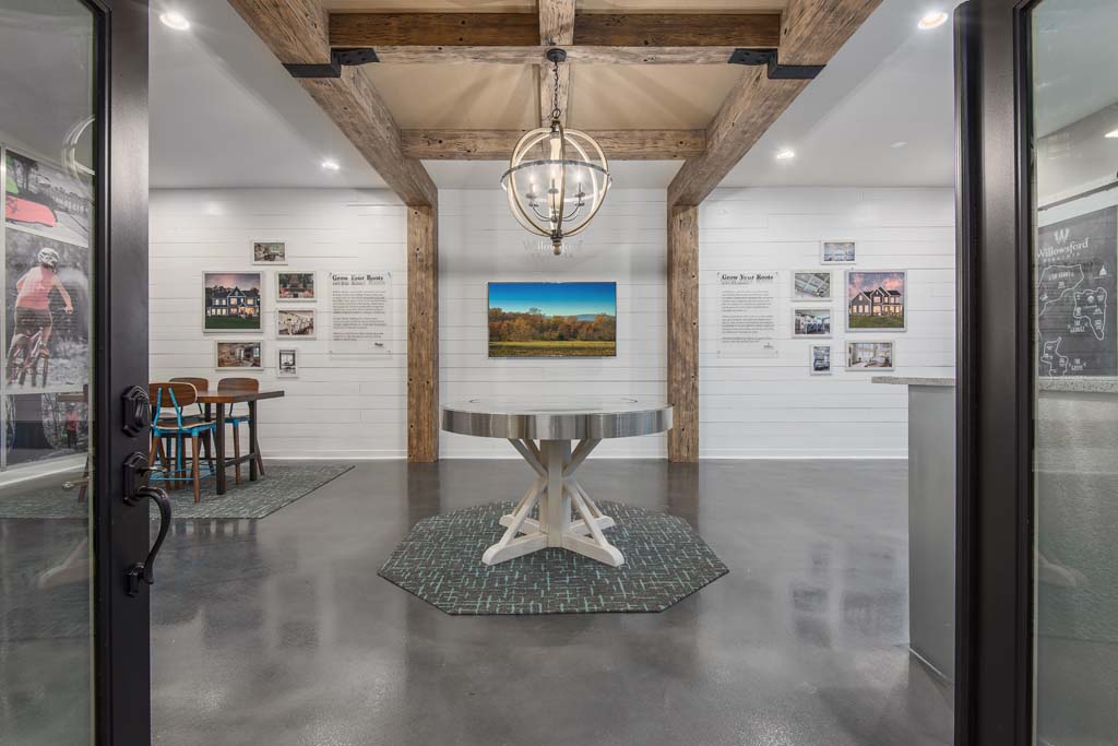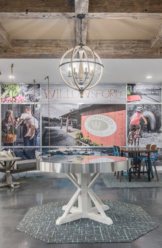 Full disclosure here. LM Marketing Group may have been a little giddy when we received an opportunity to design the Greeting House for three-time GALA winner, Willowsford. Our client, NVHomes, gave us only one suggestion for its new design direction. It had to have a barn-like feel for this farm-to-table inspired community. Part of our job as marketers is to ask the right questions. So in interviewing our client, we knew there was an immediate challenge. Willowsford already has two beautiful community sales centers that often times get bypassed by prospects, as tours usually start and end walking the models. Willowsford has such an amazing story to tell. And although this was our challenge, LM Marketing Group saw the opportunity to be had. So we channeled our inner Joanna Gaines and added a bit of the Willowsford personality to come up with the final result.